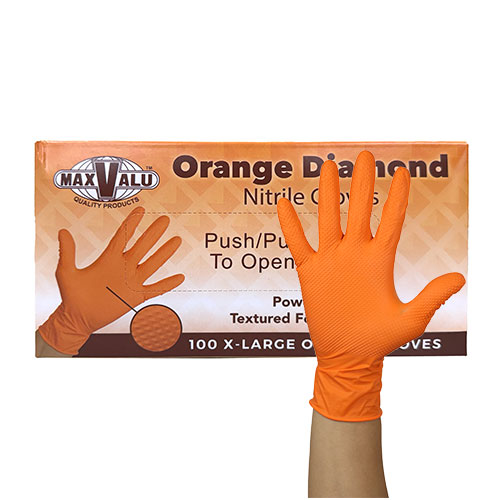 Get the job done with our Orange industrial gloves. These gloves are crafted with an 8 mil thickness, providing top-notch protection and grip in challenging industrial settings. Their raised diamond texture ensures a strong grip for handling heavy tools and equipment, while the bright orange hue adds visibility for safety in low-light conditions. Made with nitrile material, these gloves offer resistance against chemicals, oils, and punctures. Powder and latex-free, they are suitable for individuals with allergies or sensitivities.